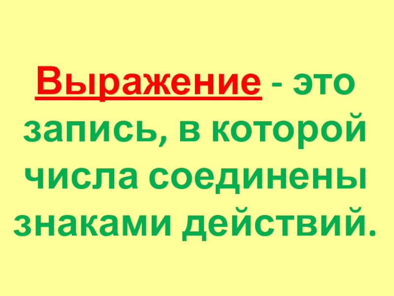 Выражение - это запись, в которой числа соединены знаками действий.