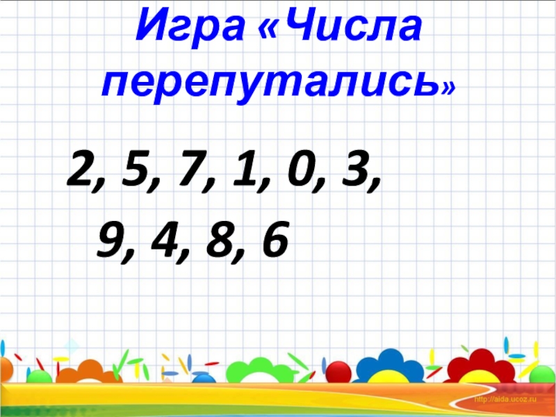 Игра «Числа перепутались» 2, 5, 7, 1, 0, 3, 9, 4, 8, 6