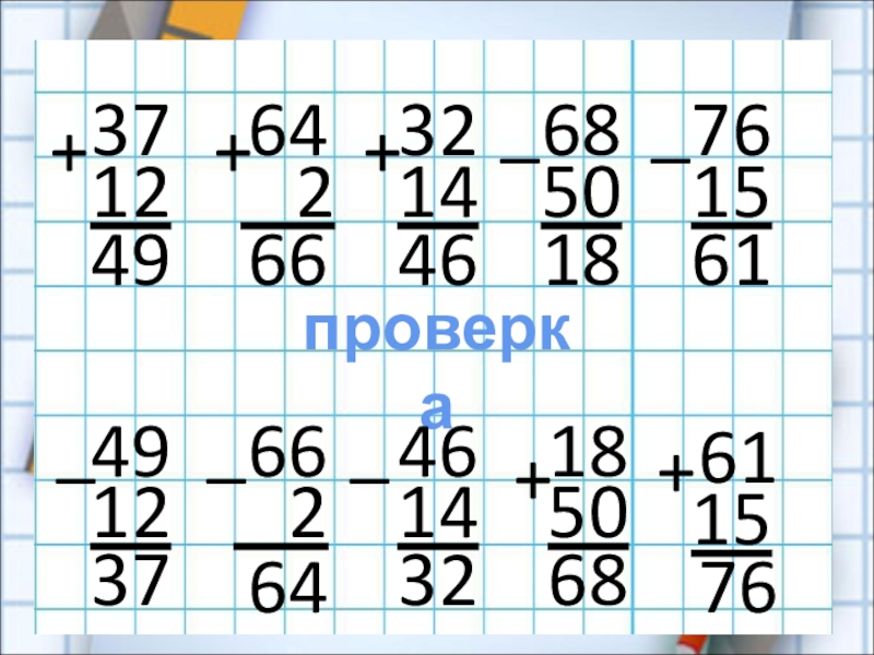 Презентация, доклад по математике Проверка сложения и вычитания
