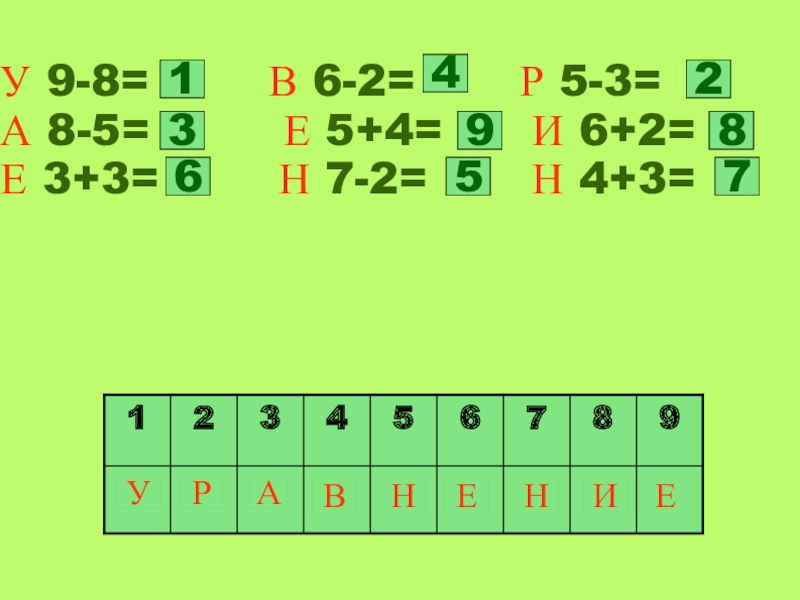 У 9-8=    В 6-2=    Р 5-3=А 8-5=