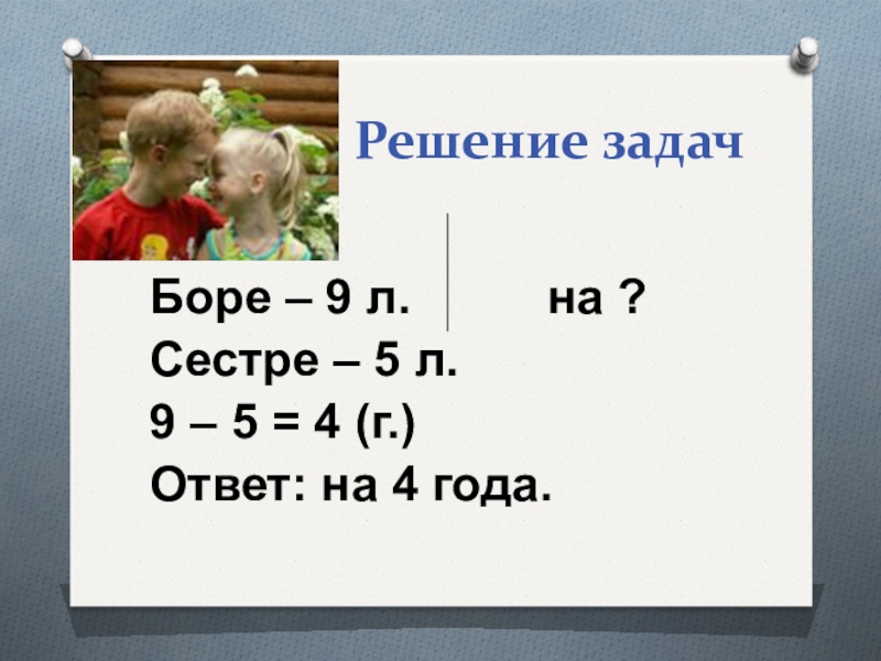 Решение задач1 гр. – 7 т.2 гр. – ?, на 3 т. б.7 + 3 = 10