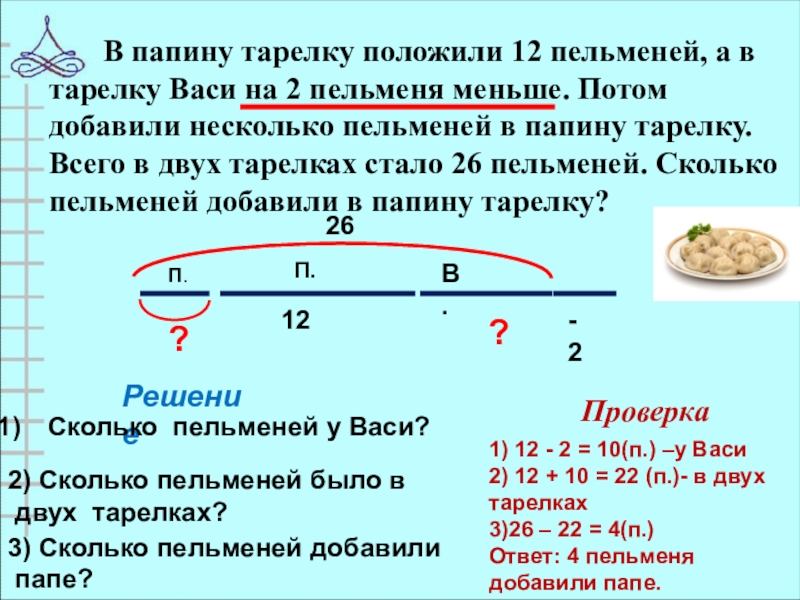 2) 12 + 10 = 22 (п.)- в двух тарелках