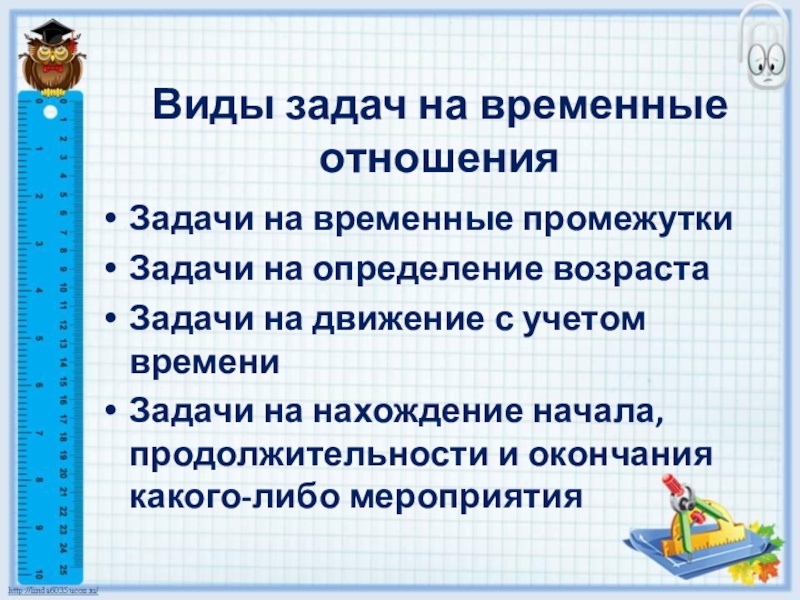 Слайд 3Виды задач на временные отношения