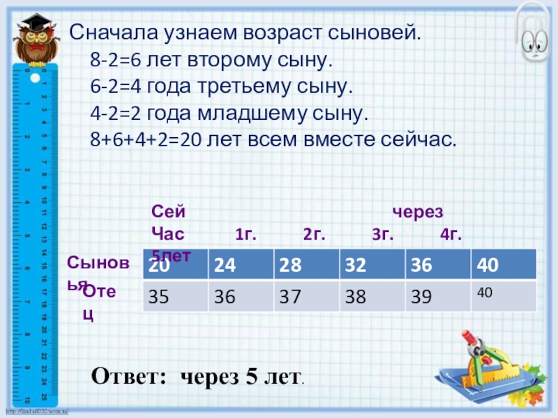 Слайд 14Сначала узнаем возраст сыновей.