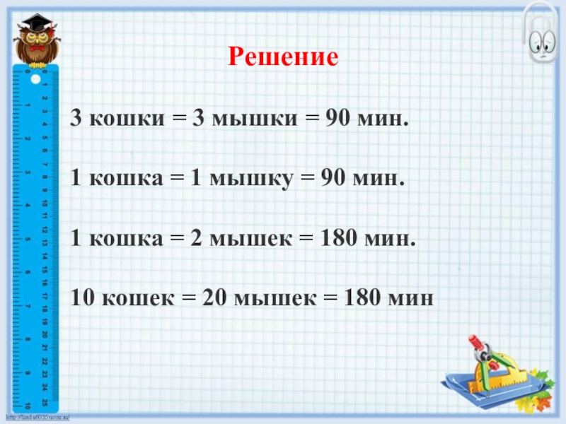 10 кошек = 20 мышек = 180 мин