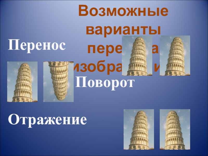 Возможные варианты перехода изображения:Перенос    ПоворотОтражение