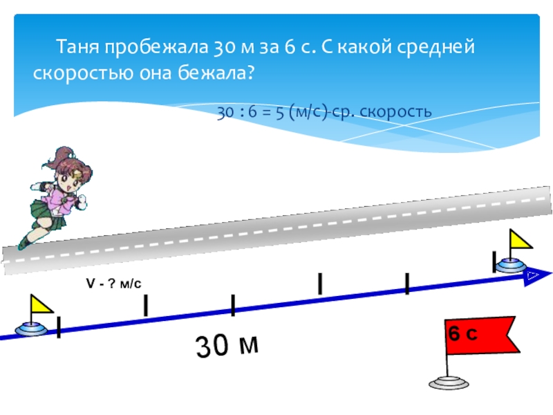 30 : 6 = 5 (м/с)-ср. скорость