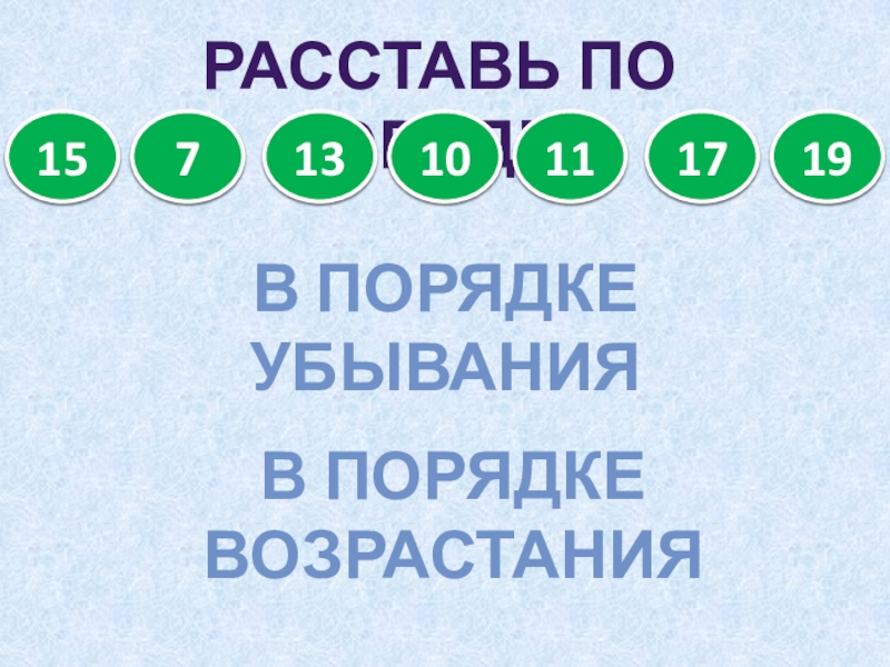 Расставь ПО ПОРЯДКУ1571310191711В ПОРЯДКЕ УБЫВАНИЯВ ПОРЯДКЕ ВОЗРАСТАНИЯ1571310191711