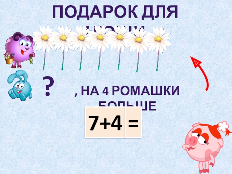 Подарок для нюши?, На 4 ромашки больше7+4=