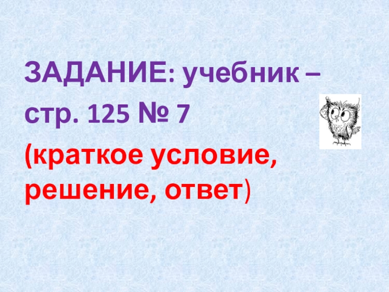ЗАДАНИЕ: учебник – стр. 125 № 7(краткое условие,   решение, ответ)