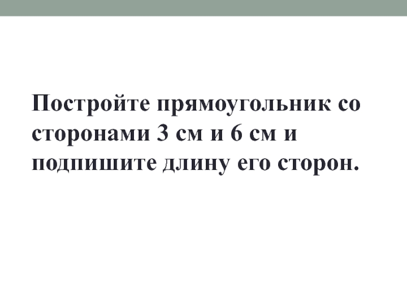 Слайд 4Постройте прямоугольник со сторонами 3 см и 6 см и подпишите