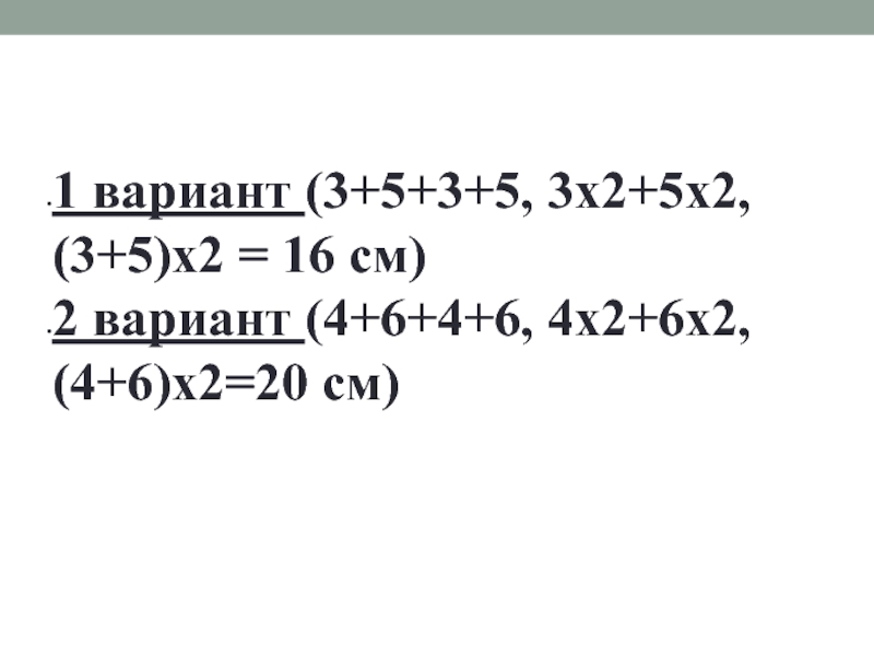 Слайд 71 вариант (3+5+3+5, 3х2+5х2, (3+5)х2 = 16 см)