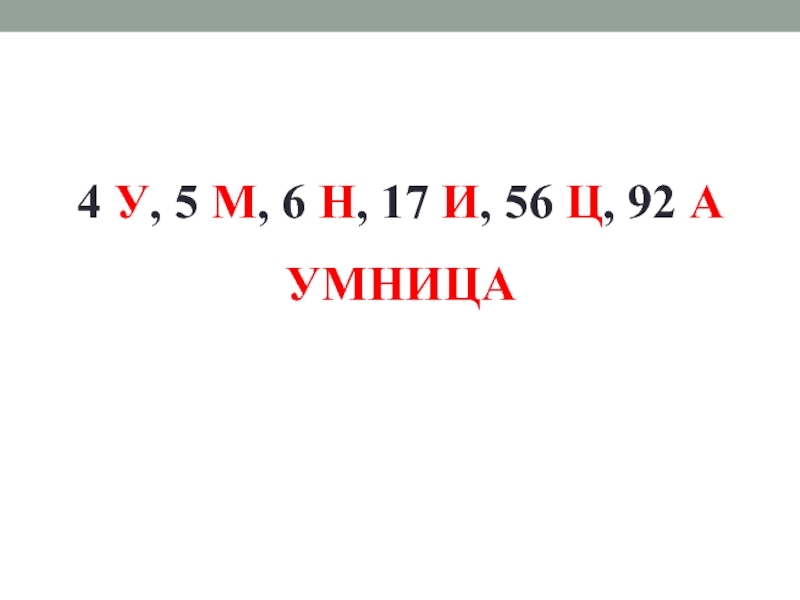 Слайд 34 У, 5 М, 6 Н, 17 И, 56 Ц, 92