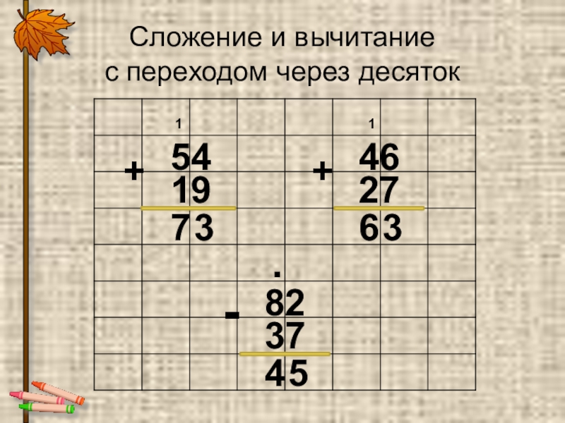 через десяток в столбик в пределах 100»