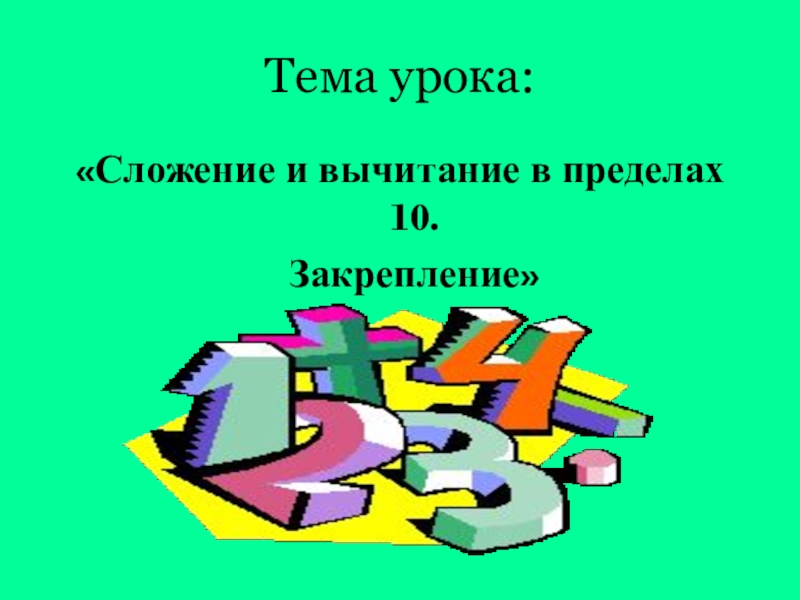 Тема урока:«Сложение и вычитание в пределах 10. Закрепление»