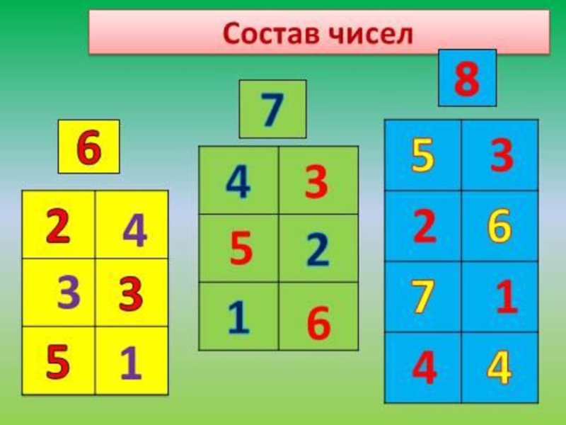 Слайд 1Состав чисел …….до 8