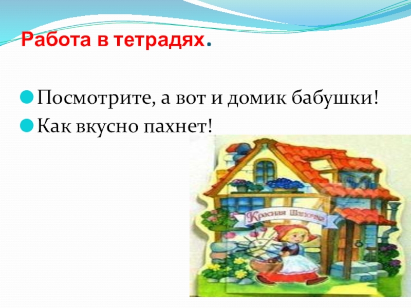 Работа в тетрадях. Посмотрите, а вот и домик бабушки!Как вкусно пахнет!