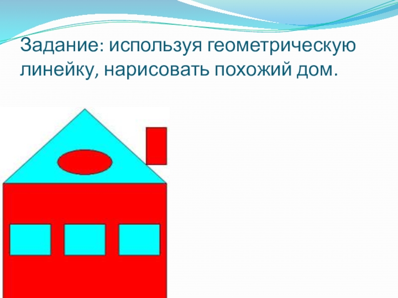 Слайд 25Задание: используя геометрическую линейку, нарисовать похожий дом.