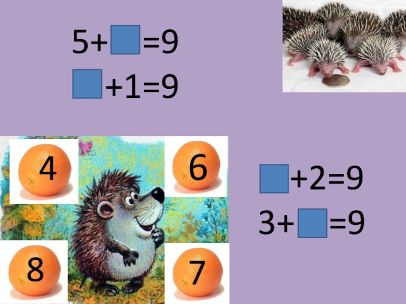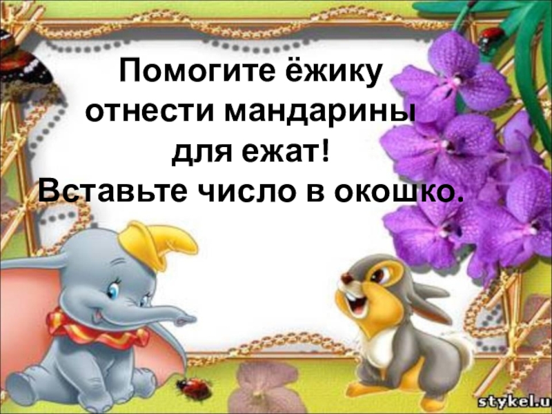 Слайд 15Помогите ёжику отнести мандарины для ежат! Вставьте число в окошко.