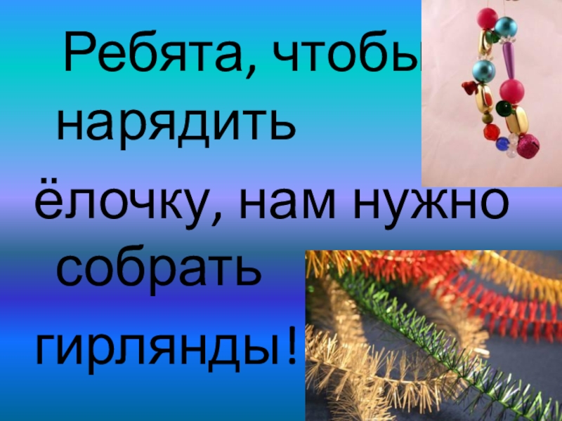 Ребята, чтобы нарядить ёлочку, нам нужно собрать гирлянды!