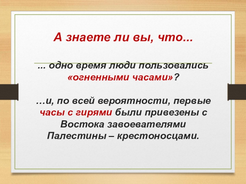 А ведь когда-то часов и в самом деле не было – никаких, ни с пружинами, ни с гирями.