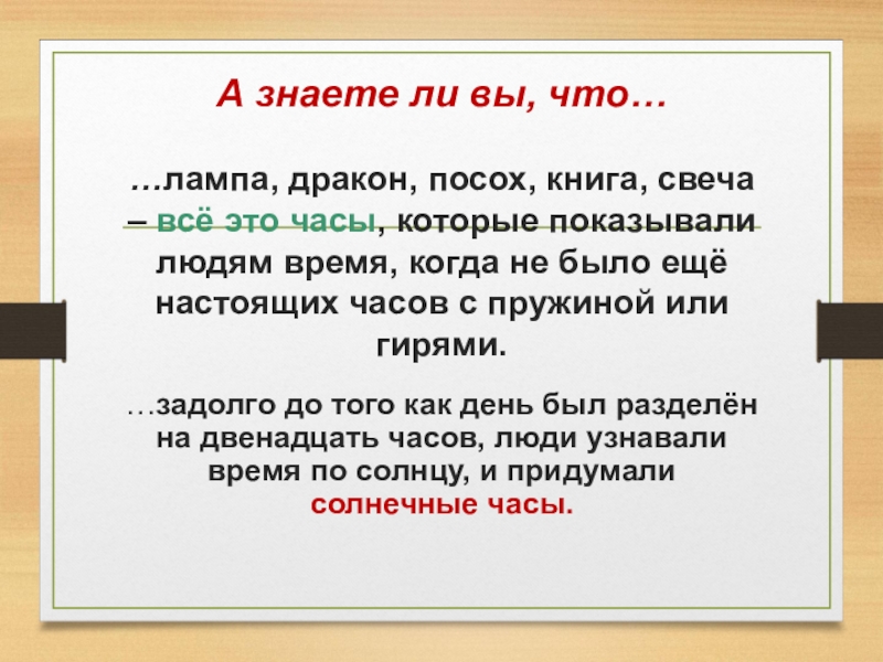 …задолго до того как день был разделён на двенадцать часов, люди узнавали время по солнцу, и придумали