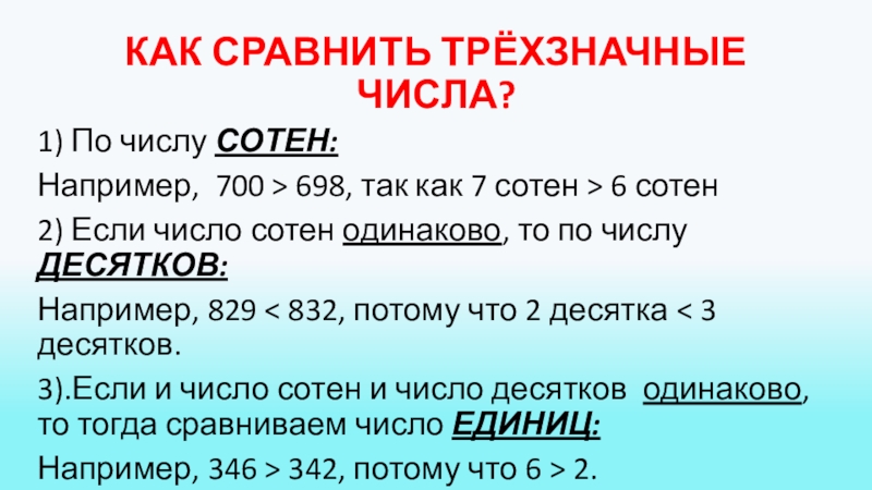 ДОЛЖНЫ НАУЧИТЬСЯ:СРАВНИВАТЬТРЁХЗНАЧНЫЕЧИСЛА