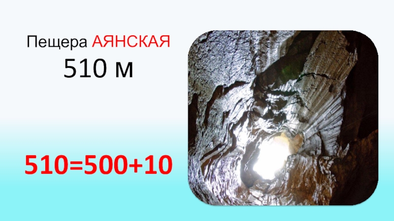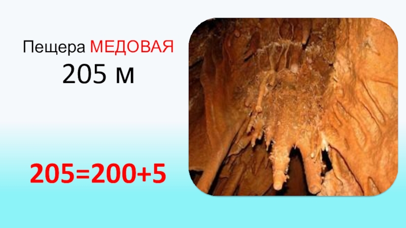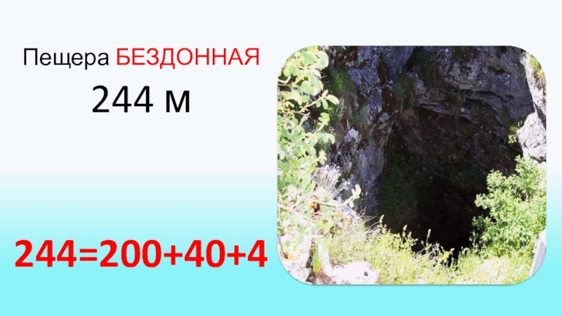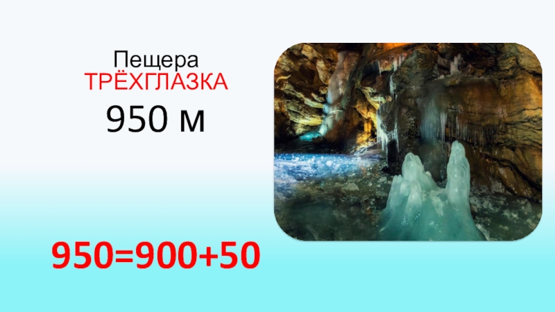 Задание. Представьте длину крымских пещер в виде суммы разрядных слагаемых.Пещера МРАМОРНАЯ 835 м835=800+30+5