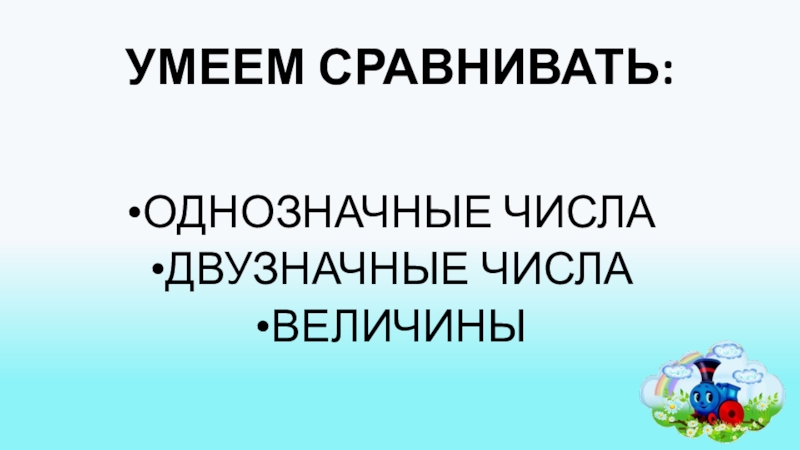 УМЕЕМ СРАВНИВАТЬ:ОДНОЗНАЧНЫЕ ЧИСЛАДВУЗНАЧНЫЕ ЧИСЛАВЕЛИЧИНЫ