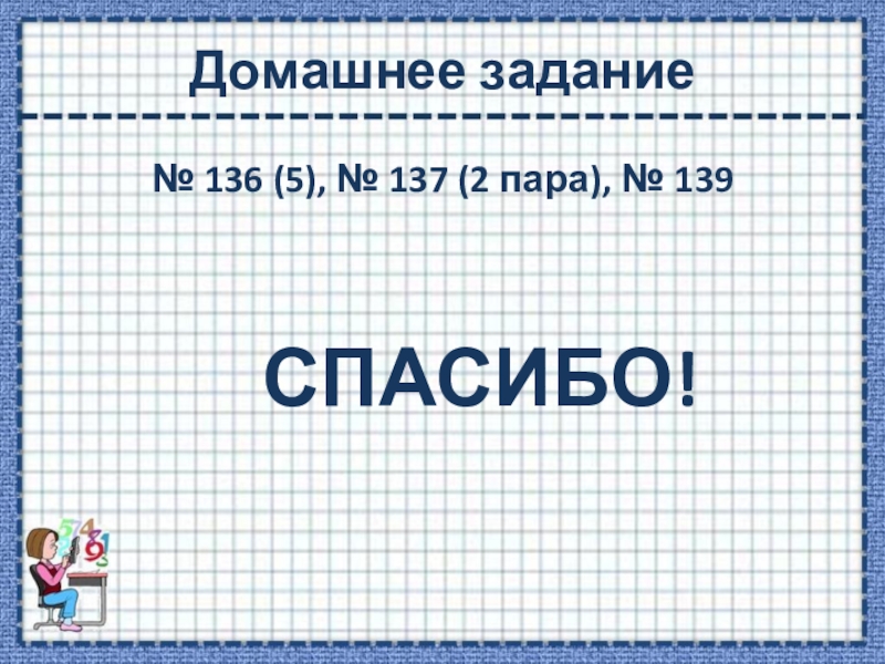 Домашнее задание№ 136 (5), № 137 (2 пара), № 139   СПАСИБО!