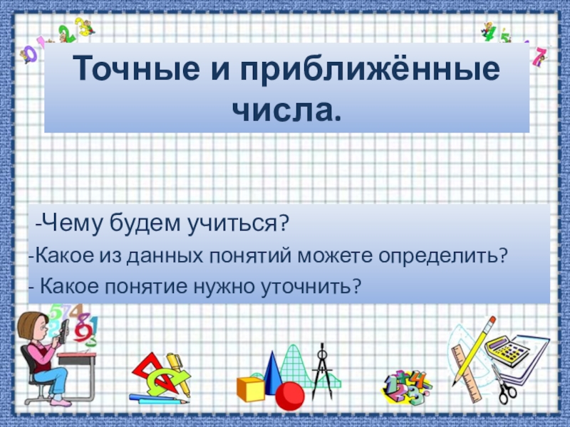 Точные и приближённые числа.-Чему будем учиться?   Какое из данных понятий можете определить? Какое понятие нужно