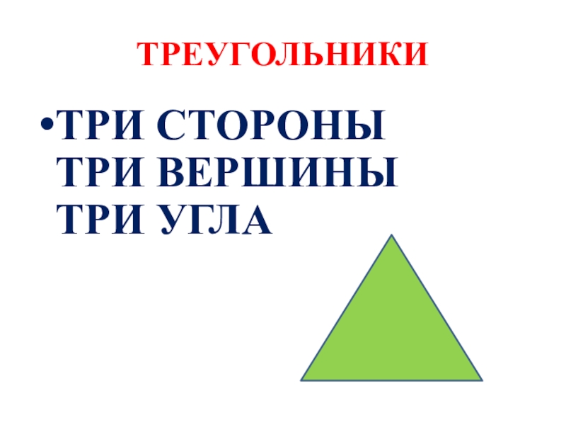 ТРИ СТОРОНЫ ТРИ ВЕРШИНЫ ТРИ УГЛА