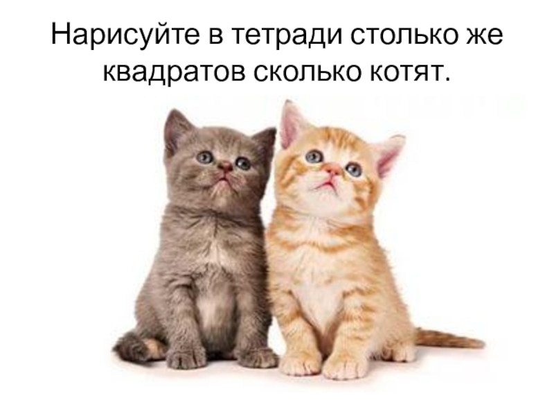 Слайд 2Нарисуйте в тетради столько же квадратов сколько котят.
