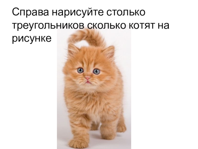 Слайд 4Справа нарисуйте столько треугольников сколько котят на рисунке