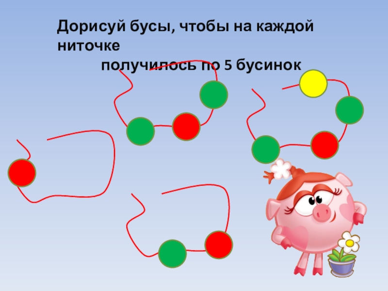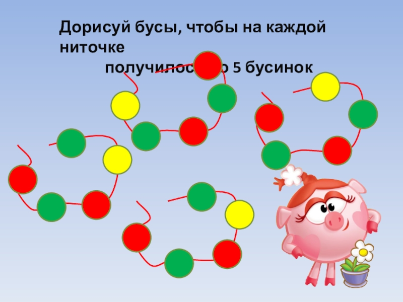 Слайд 10Дорисуй бусы, чтобы на каждой ниточке