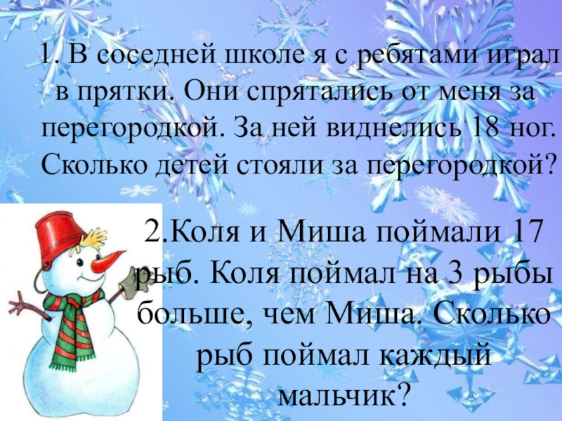 2.Коля и Миша поймали 17 рыб. Коля поймал на 3 рыбы больше, чем Миша. Сколько рыб поймал каждый мальчик?