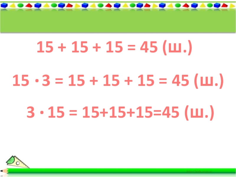 15 + 15 + 15 = 45 (ш.) 15  3 = 15 + 15 + 15