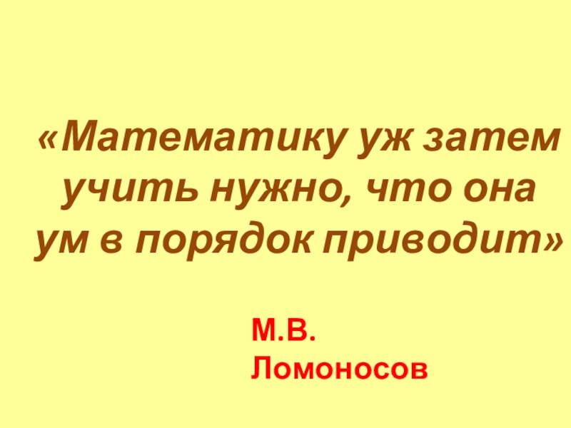«Математику уж затем учить нужно, что она ум в порядок приводит» М.В.Ломоносов