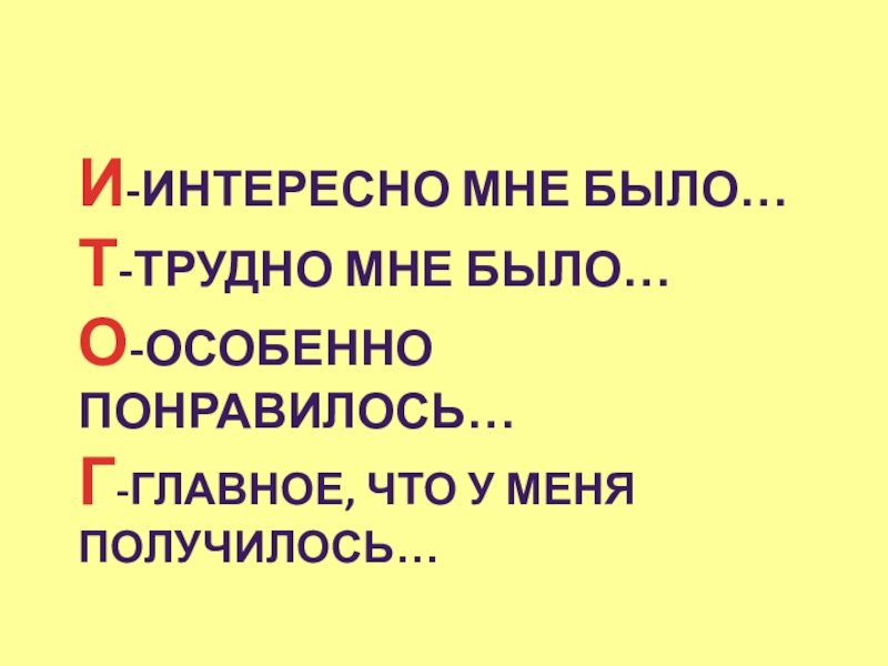 И-интересно мне было…Т-трудно мне было…О-особенно понравилось…Г-главное, что у меня получилось…
