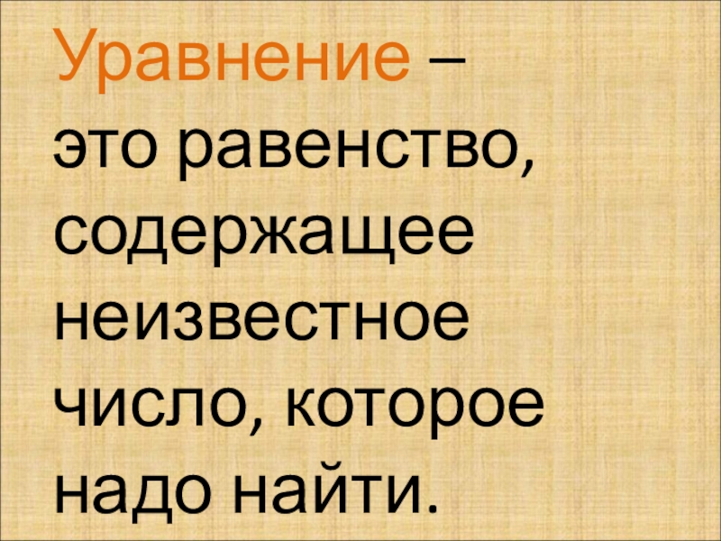Уравнение –  это равенство, содержащее неизвестное число, которое надо найти.