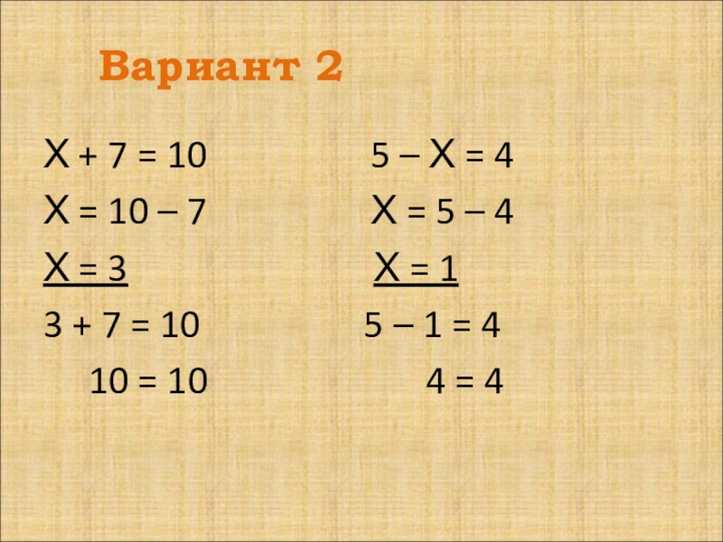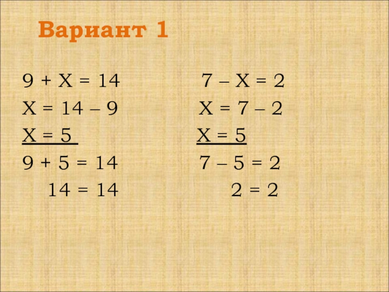 Вариант 19 + Х = 14       7 – Х = 2Х