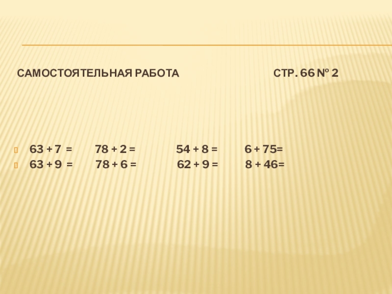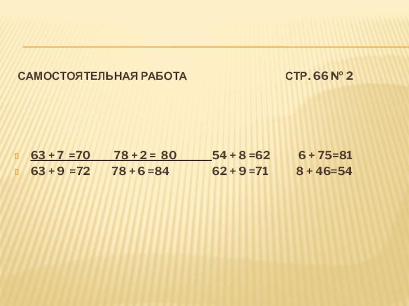 63 + 7 = 78 + 2 = 54 + 8 = 6 + 75=