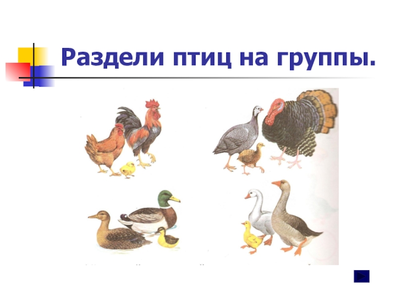 Слайд 4Раздели птиц на группы.