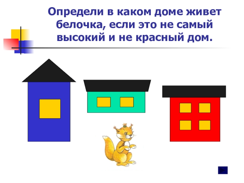 Слайд 9Определи в каком доме живет белочка, если это не самый высокий