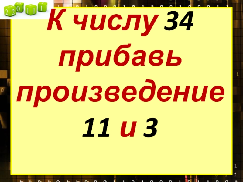 Слайд 3К числу 34 прибавь произведение 11 и 3