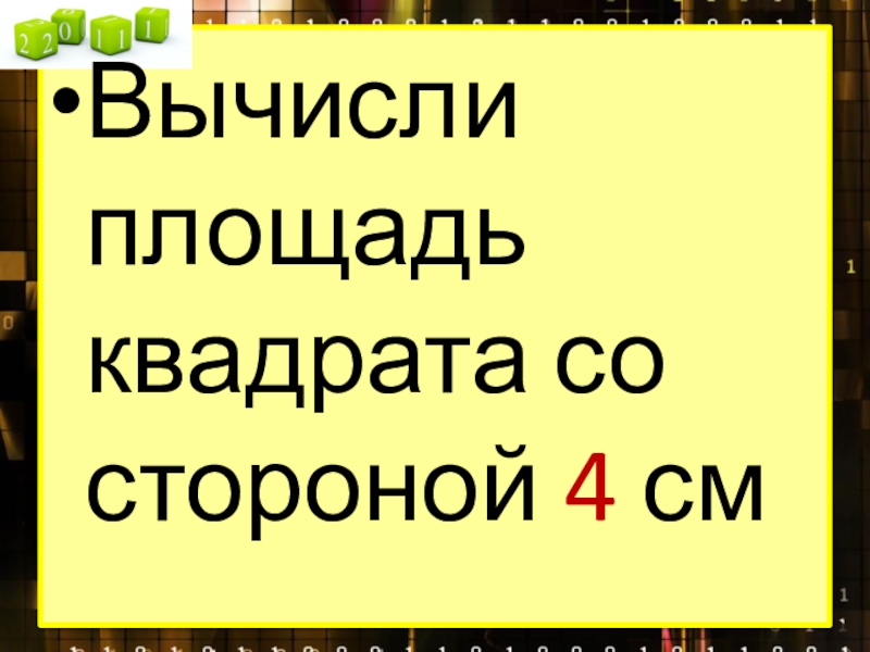 Слайд 8Вычисли площадь квадрата со стороной 4 см