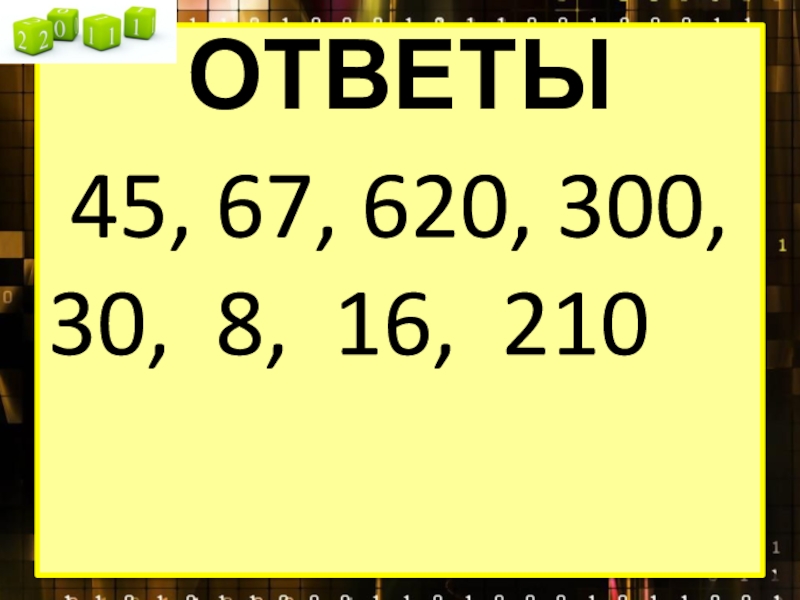 ОТВЕТЫ 45, 67, 620, 300,  30, 8, 16, 210