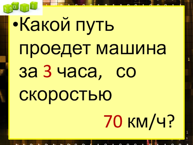 Слайд 9Какой путь проедет машина за 3 часа, со скоростью
