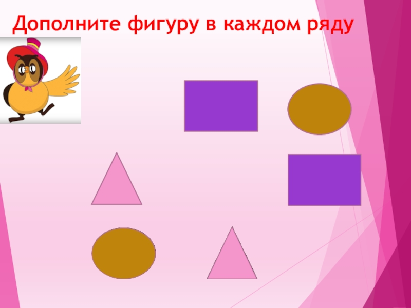 Слайд 8Дополните фигуру в каждом ряду
