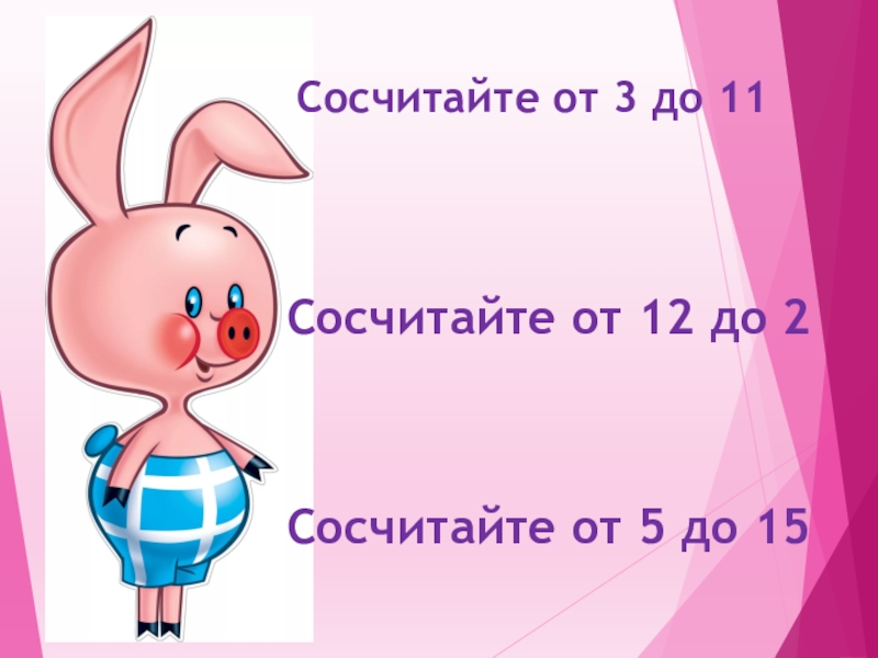Сосчитайте от 3 до 11Сосчитайте от 12 до 2Сосчитайте от 5 до 15